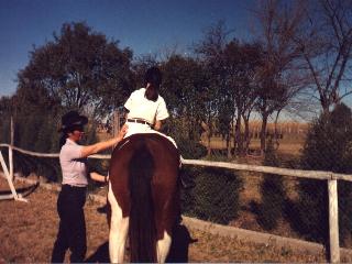 Observamos un desplazamiento de la cadera hacia la izquierda lo que provoca una escoliosis compensadora. Por esta razón es fundamental ir corrigiendo continuamente para que siempre la cadera se encuentra en la línea media longitudinal del lomo del caballo.